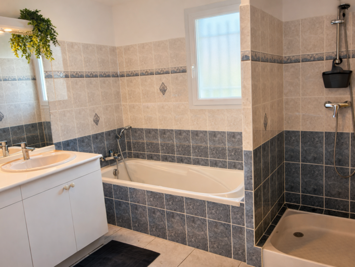 • une salle de bain avec baignoire