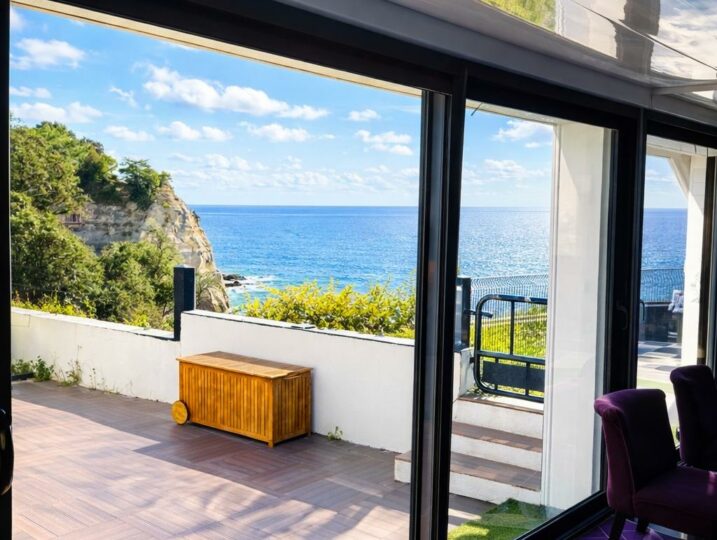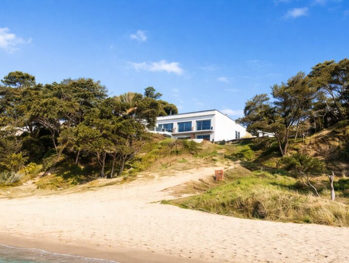 La Villa Le Dauphin coche toutes les cases d’un séjour premium : volumes généreux (300 m²), vue mer, et un emplacement exceptionnel avec accès direct à la plage des Nonnes.