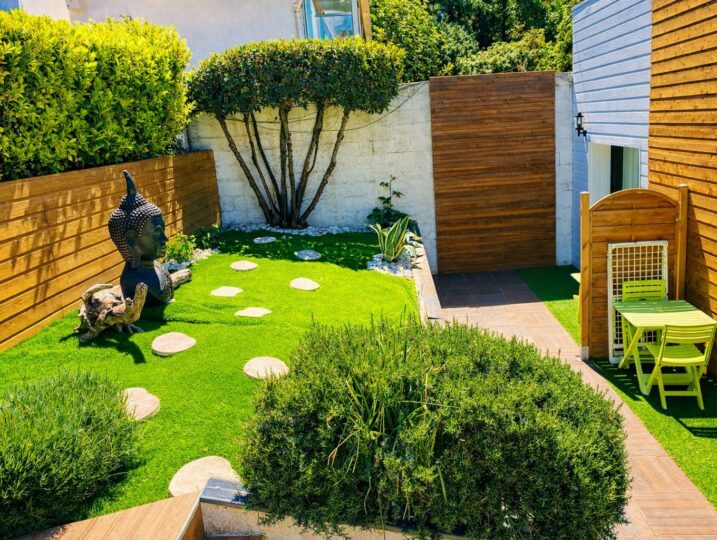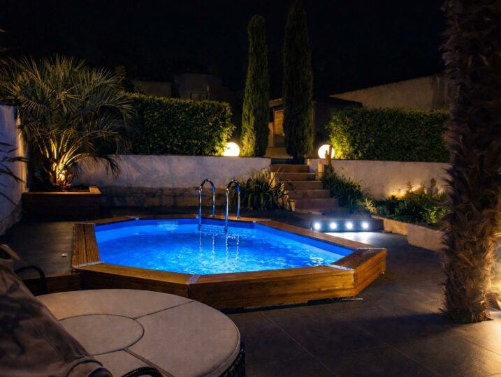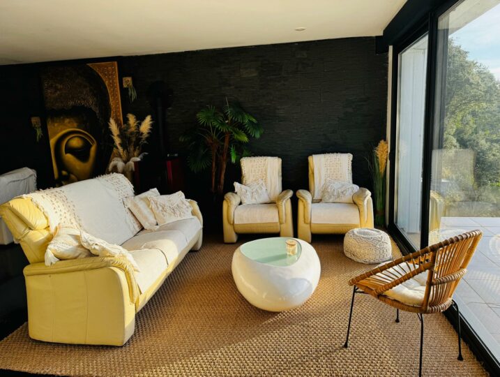 À l’extérieur : piscine, coin détente, et barbecue pour les grandes tablées d’été.