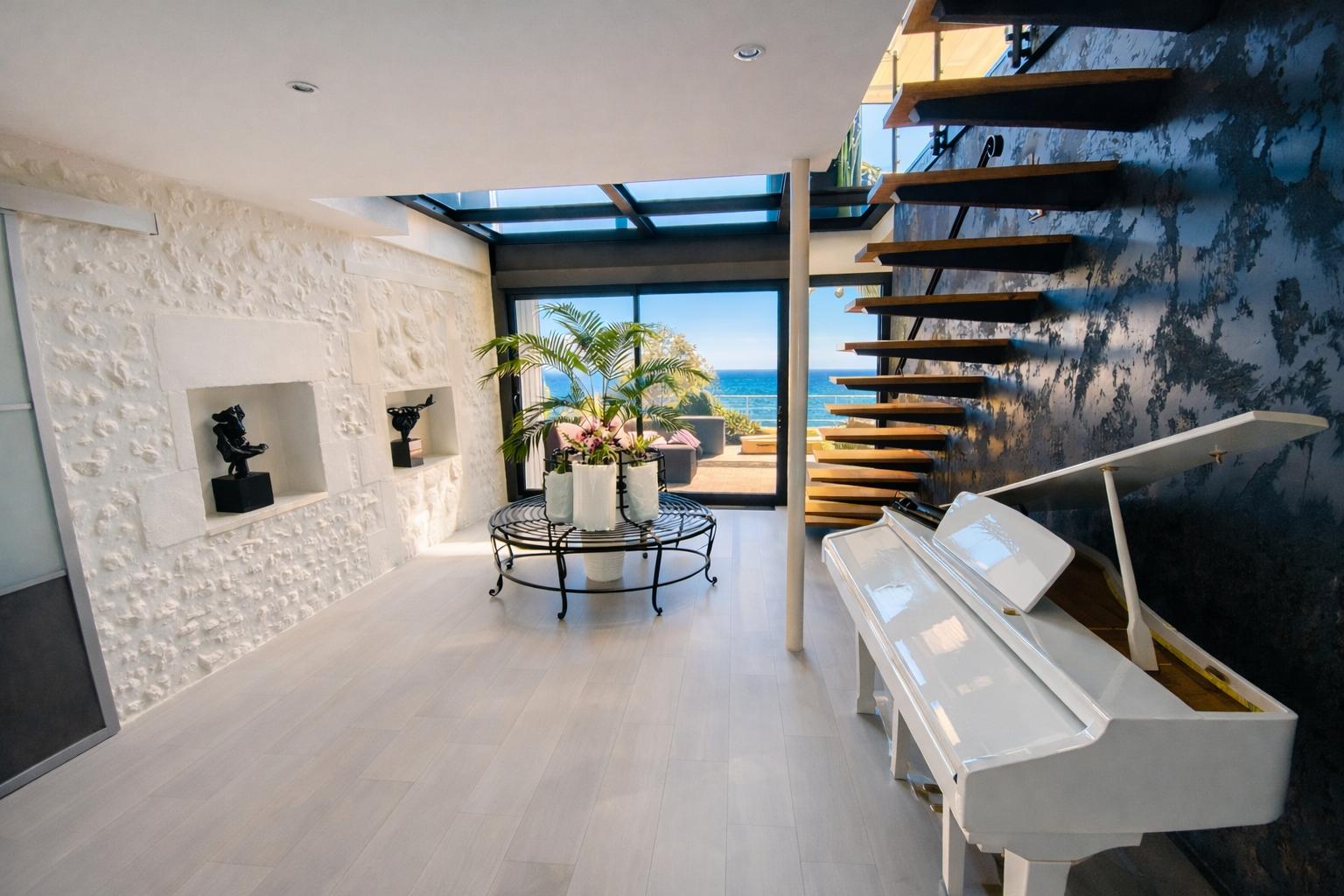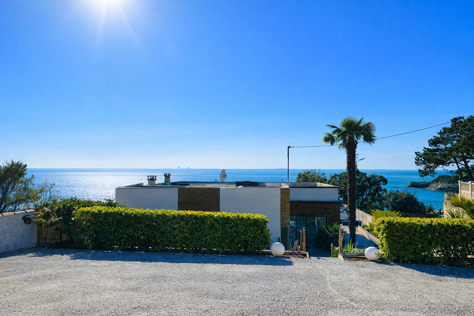 La Villa Le Dauphin coche toutes les cases d’un séjour premium : volumes généreux (300 m²), vue mer, et un emplacement exceptionnel avec accès direct à la plage des Nonnes.