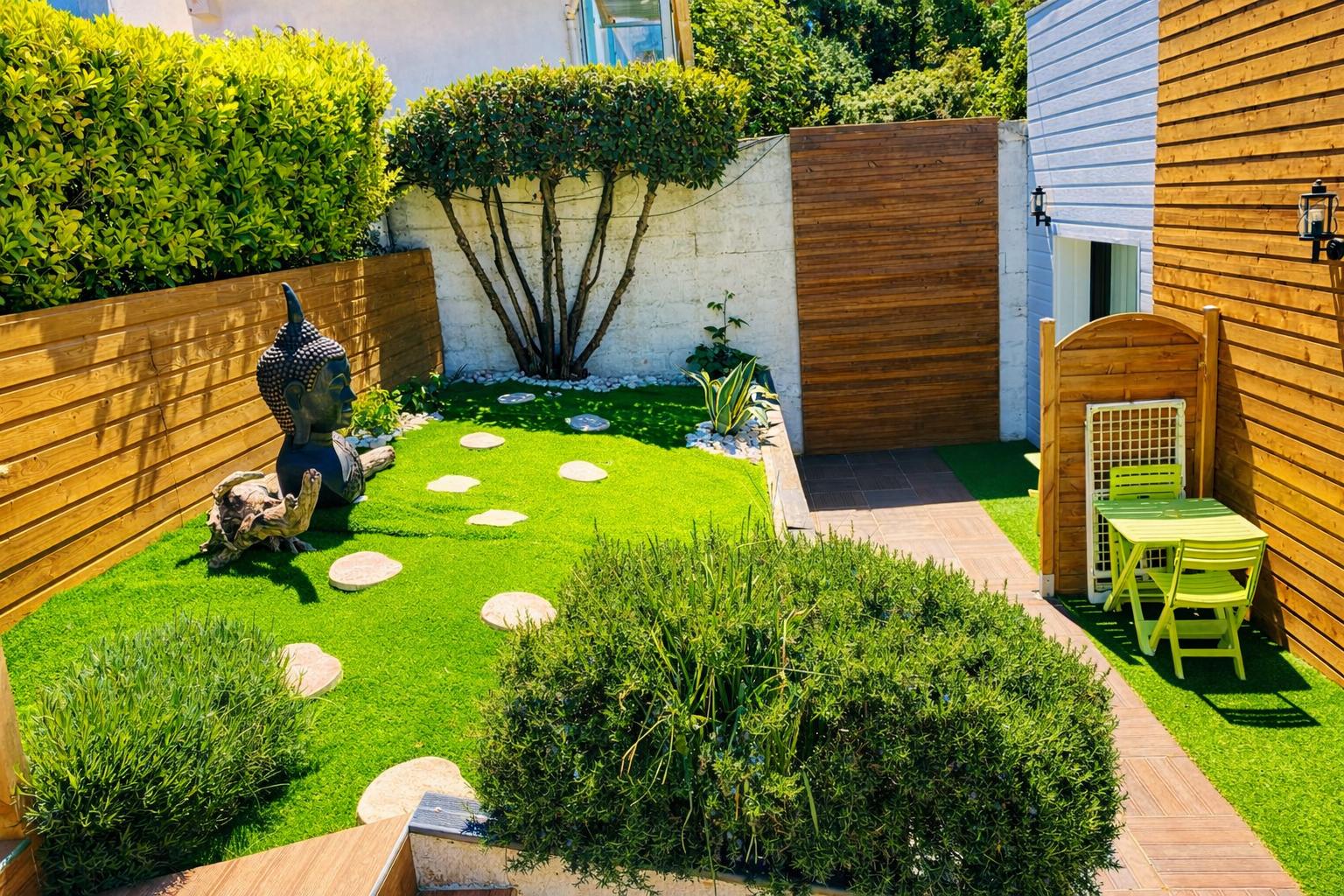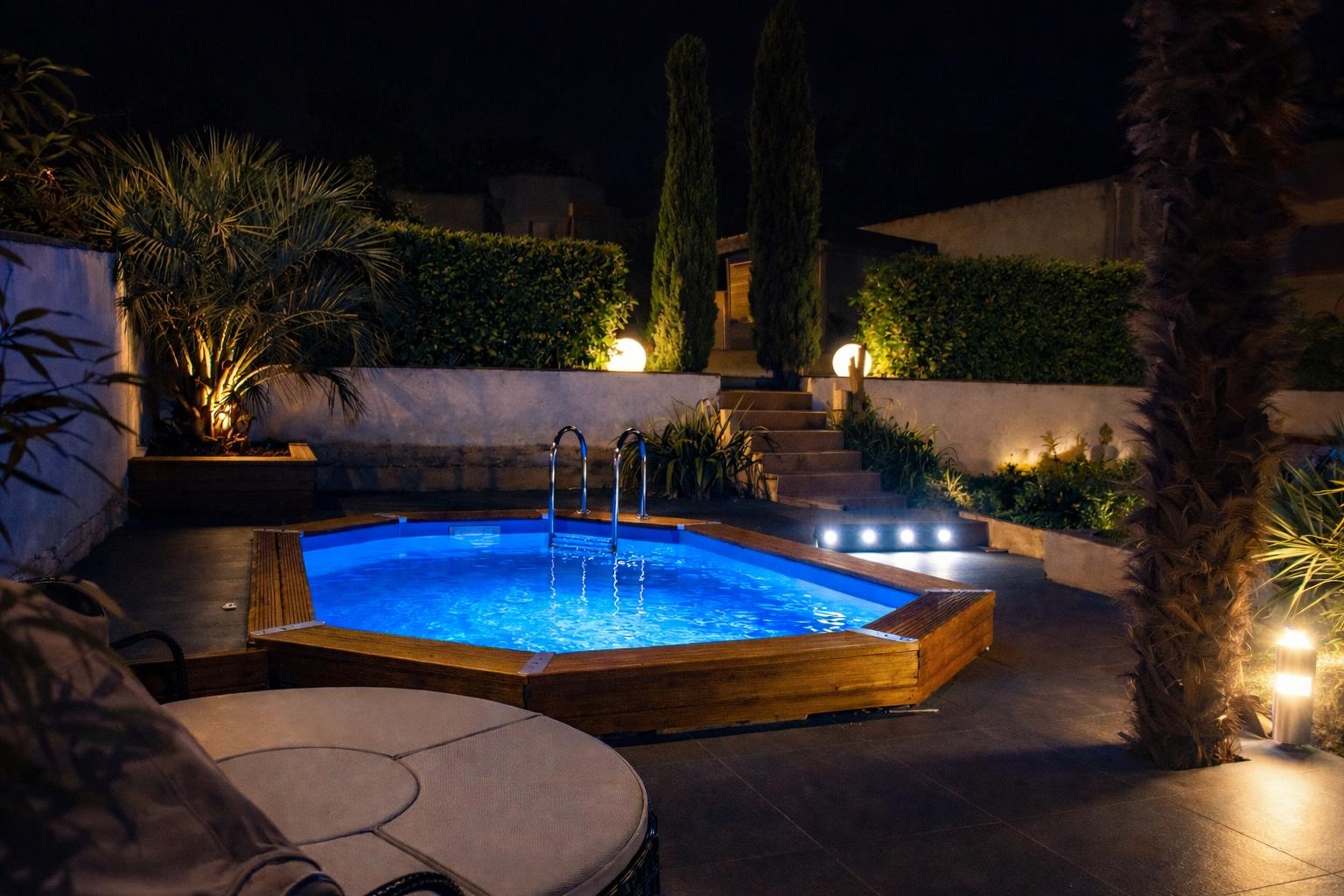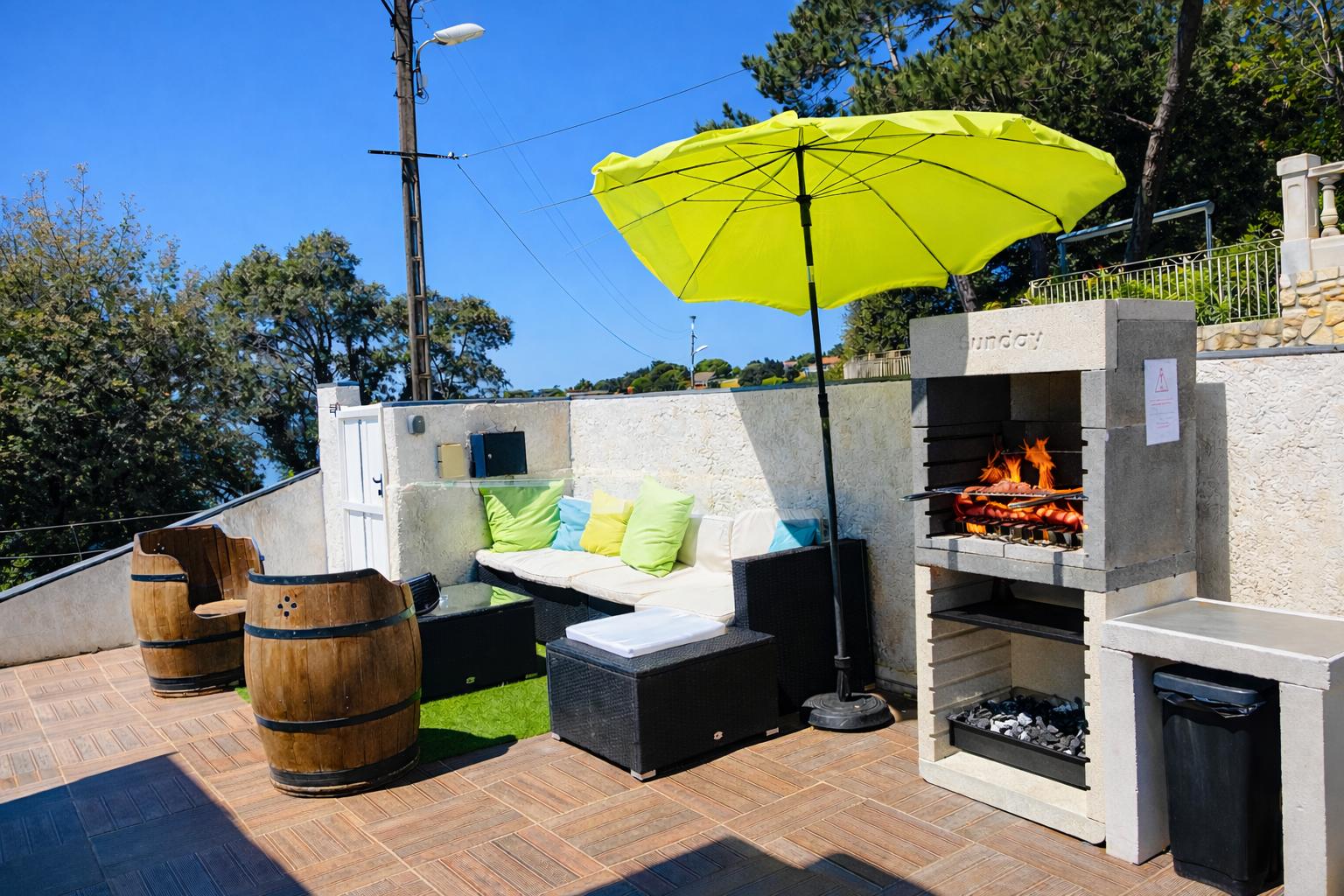 À l’extérieur : piscine, coin détente, et barbecue pour les grandes tablées d’été.